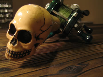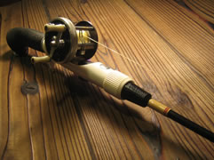 リール:道楽マツモトーイリール(研ぎ出し) グリップ:道楽加賀山中昇龍ウタマロエログリップ ロッド:道楽マーク? ライン:道楽NO.1 Ksan |